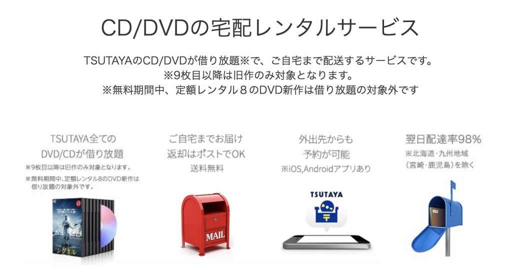 注文してから自宅に届くまでの待ち時間が気になるところではありますが、なんとTSUTAYA DISCASの翌日配達率は驚異の98%!